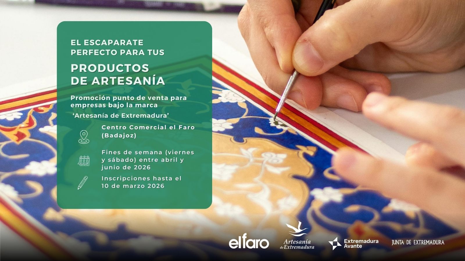 Extremadura Avante pretende llevar a cabo una Promoción Punto de Venta de “Artesanía de Extremadura” en el Centro Comercial el Faro (Badajoz), entre abril y junio de 2026.