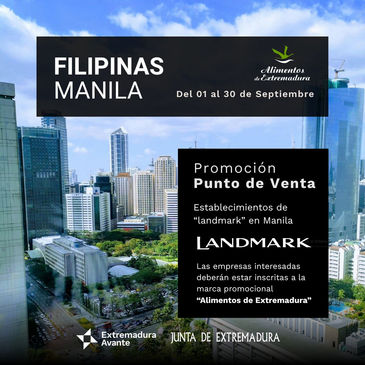 Extremadura Avante organiza una Promoción Punto de Venta de “Alimentos de Extremadura” en los establecimientos de “Landmark” en Manila (Filipinas), con el objeto de fomentar la comercialización internacional de los productos agroalimentarios extremeños.