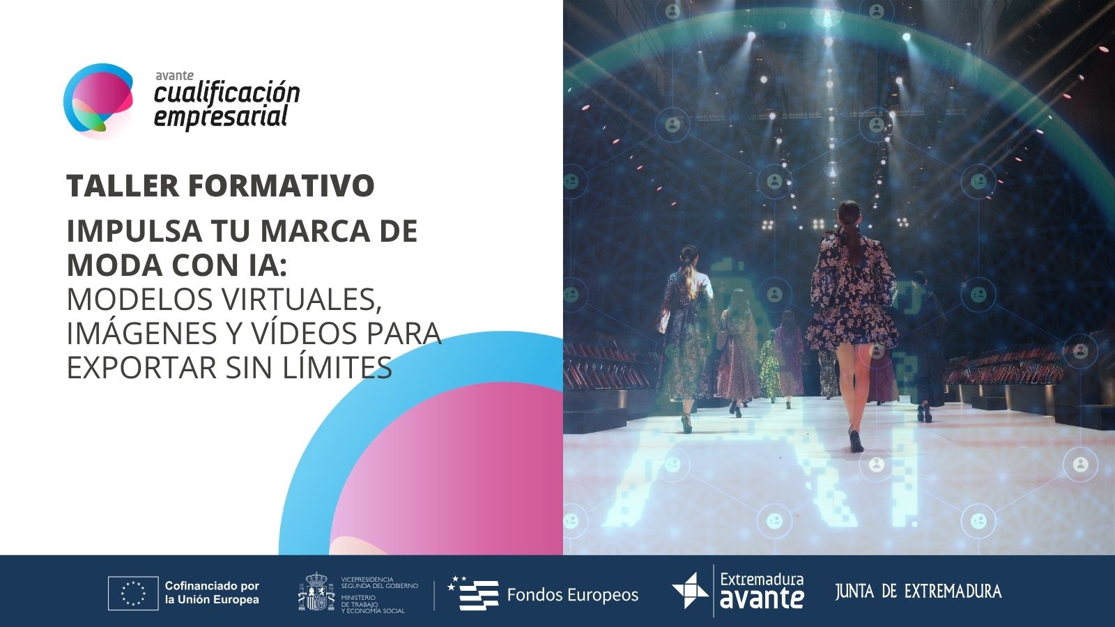 Extremadura Avante organiza el taller “Impulsa tu marca de Moda con IA: Modelos Virtuales, Imágenes y Vídeos para Exportar Sin Límites” que se desarrollará en modalidad virtual: webinario grupal + tutorías individuales personalizadas, el próximo 7 de octubre de 2025, en horario de 11.00 a 13.00 horas, impartido en el marco del programa de Cualificación Empresarial para la Exportación, actividad cofinanciada por el programa FSE+ Extremadura 2021-2027.
