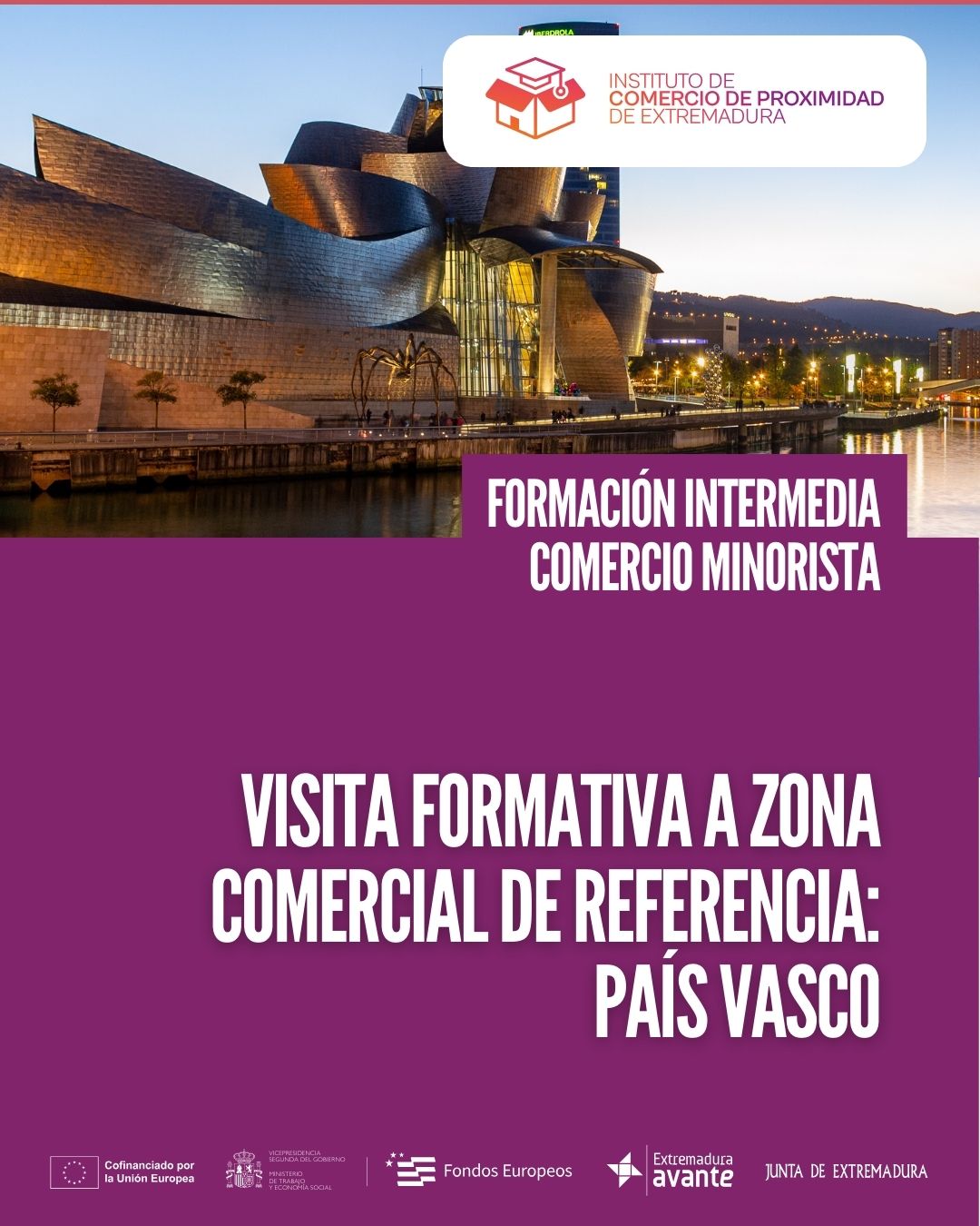 Esta actividad está enmarcada en el programa del Instituto de Comercio de Proximidad de Extremadura, una visita formativa a las Zonas Comerciales del País Vasco 27 al 31 de octubre 2025, organizada por la Junta de Extremadura, a través de Extremadura Avante.