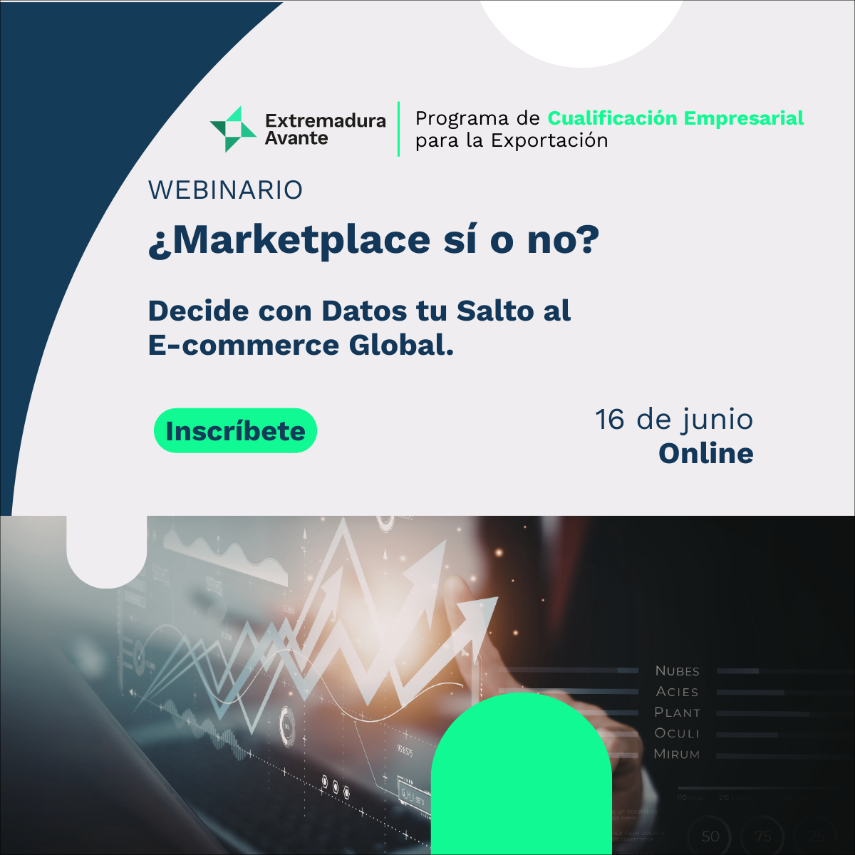 Extremadura Avante organiza la jornada online “¿Marketplace sí o no? Decide con Datos tu Salto al E-commerce Global”, que se desarrollará el martes 16 de junio 2026 en horario de 11.00 a 13.00 horas; en el marco del programa de Cualificación Empresarial para la Exportación 2026, actividad cofinanciada por el programa FSE+ Extremadura 2021-2027.